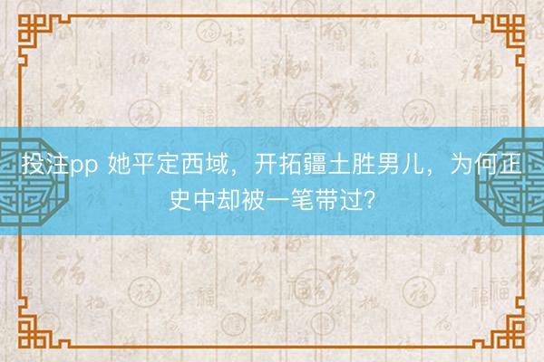 她平定西域,开拓疆土胜男儿,为何正史中却被一笔带过? 在中国古代历史上,西域地区,一直是中原王朝的重要边疆,也是丝绸之路的必经之地,对中原王朝的边防安全和经济文化交流,有着至关重要的作用。自古以来,平定西域、开拓疆土,都是男子的事情,可在东汉时期,有一位女子,打破了这一常规,她出身贵族,胆识过人,凭借自己的智慧和手腕,出使西域、安抚诸国,平定西域叛乱,开拓疆土的功绩,甚至超过许多男子将领,为东汉王...