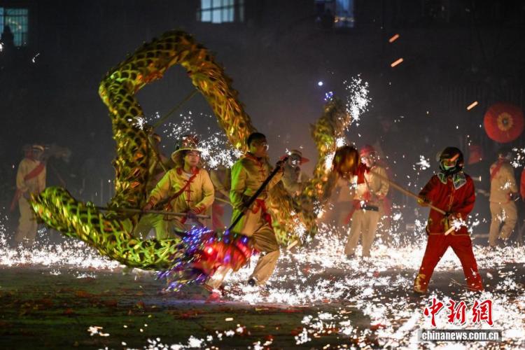 真钱投注app普定县“铁水冲龙”非遗展演现场。" />