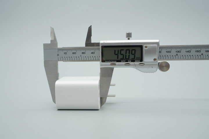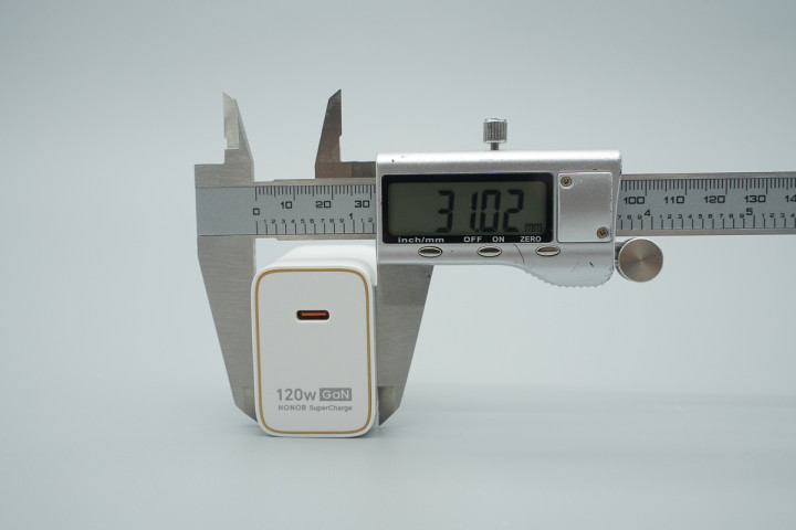 实测荣耀120W魔方万能充电器机身长度为45.09mm。