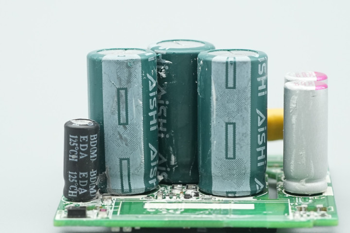 模块前端一览,中间区域设有高压滤波电解电容以及主控芯片供电电容。