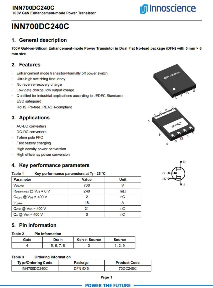 英诺赛科INN700DC240C贵寓信息。