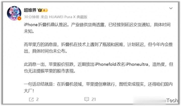 一则坏音讯传来!果粉耿耿于怀多年的苹果折叠屏iPhone,似乎并不狡计在本年春季和人人碰面。