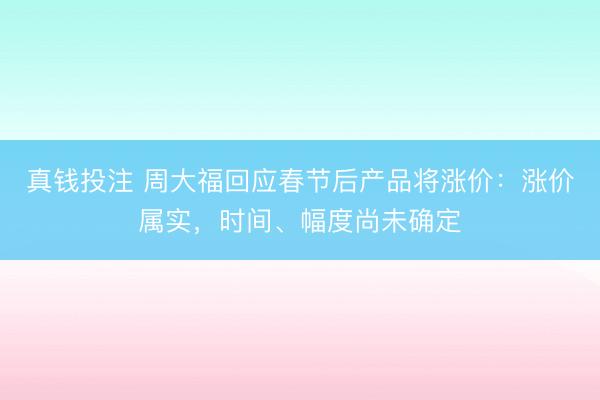 {jz:field.toptypename/} 财联社 2 月 10 日电,有消息称,周大福春节后将对黄金产品调价,此次调价或于 3 月中旬实施,目前部分门店已收到相关通知,涨价重点集中在一口价产品。对此,周大福方面独家回应记者称,涨价是真的,但时间、幅度尚未确定。产品价格调整属集团的日常营运政策,公司会根据市场环境及产品需求,适时作出调价,并始终坚持维护卓越质量与精湛工艺的承诺,满足消费者的期望...