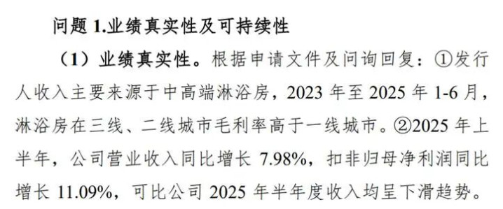 功绩实在性方面,玫瑰岛2025年上半年公司生意收入同比增长7.98%,扣除非频繁性损益包摄母公司净利润增长11.09%,这一增长施展与同期多数可比公司收入深广下滑的行业态势酿成清晰反差。北交所条目玫瑰岛证明2023年于今淋浴房家具毛利率在二三线城市较高而收入占比却缩短的相等景况,并追问功绩2025年呈现增长趋势、与可比公司功绩变动不一致的合感性。