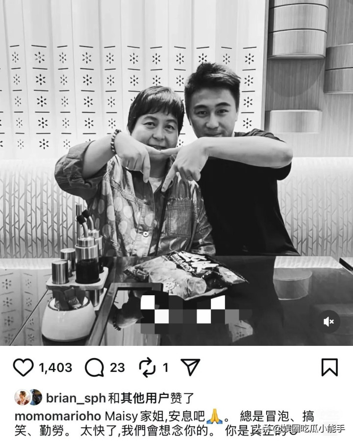 二房的几个子女确定口角常酸心的,毕竟同父同母。不外就在深宵,四房的何猷君,在叮咛平台发文悲悼何超蕸,并晒出了两东谈主的合照。