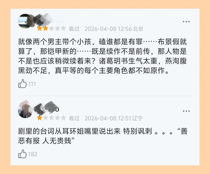 不雅众的眼睛是雪亮的,骂的点也惊东说念主地长入:换角毁情感、东说念主设全魔改、演技撑不起、剧情没逻辑、制作像活水线。五宗罪,条条致命。